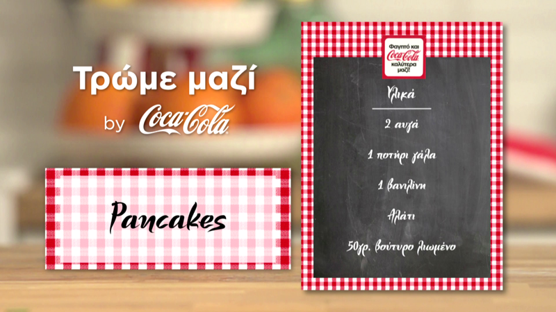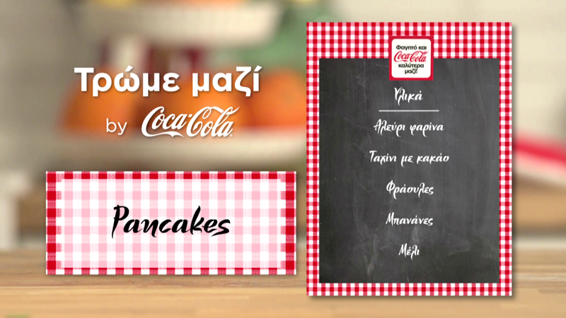 Σε ένα μπολ χτυπάμε όλα τα υλικά για τα pancakes και στη συνέχεια προσθέτουμε όσο αλεύρι φαρίνα χρειάζεται για να φτιάξουμε έναν παχύ χυλό.Σ’ ένα αντικολλητικό τηγάνι, με λίγο λιωμένο βούτυρο προσθέτουμε μια κουταλιά από τον χυλό. Μόλις αρχίσουν να σχηματίζονται φουσκάλες στην επιφάνεια του, αναποδογυρίζουμε και ψήνουμε κι από την άλλη μεριά. Σεβρίρουμε αλείφοντας το pancake με μια κουταλιά ταχίνι με κακάο, προσθέτουμε ψιλοκομμένες φράουλες και μπανάνες και γαρνίρουμε με μέλι.